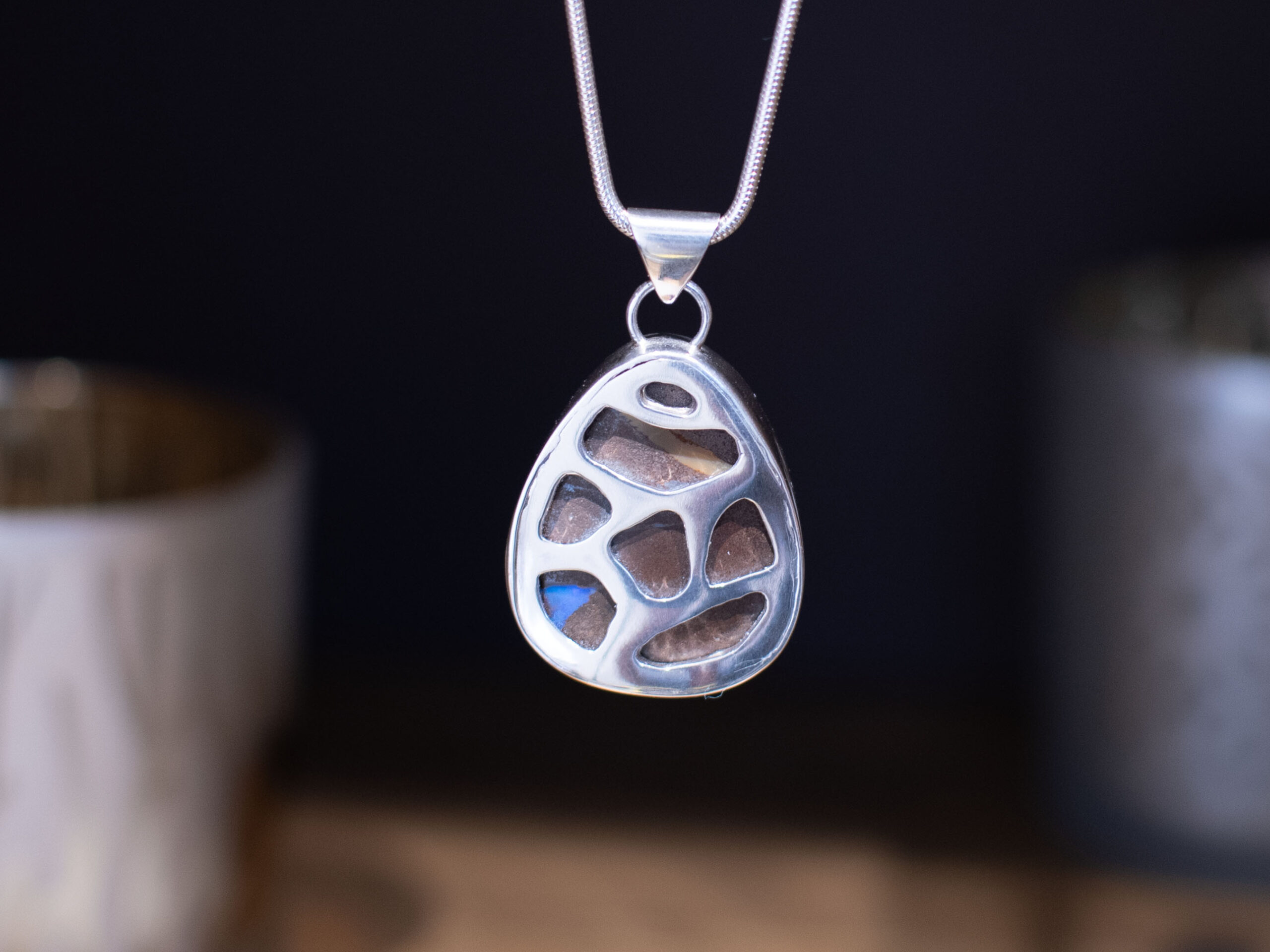 Every element of this boulder pipe opal pendant has been handmade by myself from scratch, other than the stone itself. It comes with a Sterling silver necklace of which you can choose either 16 or 18 inch length.